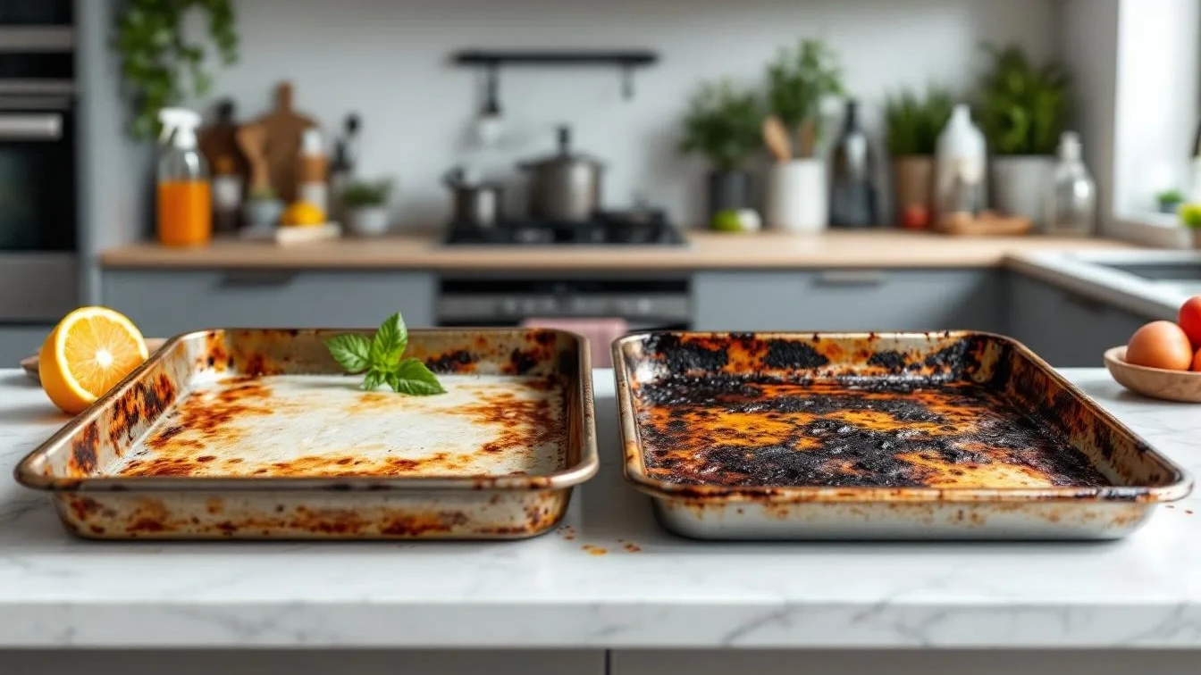 Een krachtig keukenmengsel voor het reinigen van aangekoekte bakplaten