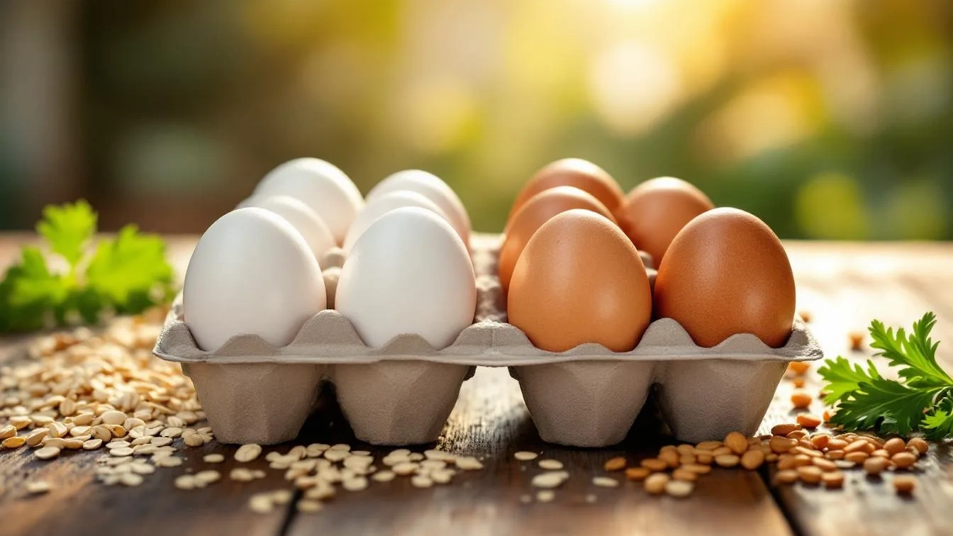 De kleur van een ei heeft alles te maken met de erfelijke eigenschappen van de kip die het legt. Kippen met witte oorlellen leggen witte eieren, terwijl kippen met rode oorlellen bruinere eieren produceren. Deze genetische factor zegt niets over de kwaliteit van de eieren of de gezondheid van de kip. De werkelijke voedingsstoffen, zoals eiwitten, vetten en vitaminen, zijn consistent in beide typen eieren.